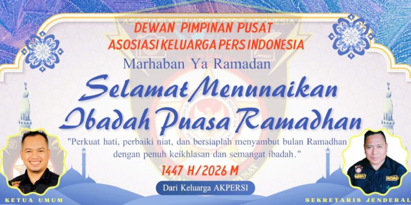 Jakarta, – Menyambut datangnya bulan suci Ramadhan 1447 Hijriah, Ketua Umum dan Sekretaris Jenderal Asosiasi Keluarga Pers Indonesia (AKPERSI) menyampaikan ucapan selamat menunaikan ibadah puasa kepada seluruh anggota AKPERSI di seluruh Indonesia. Ajak insan Pers perkuat iman. Kamis (19/02/2026).